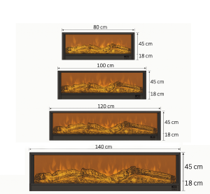 Cette cheminée est disponible en plusieurs tailles (80 cm, 100 cm, 120 cm, 140 cm) pour s’adapter parfaitement à votre espace.